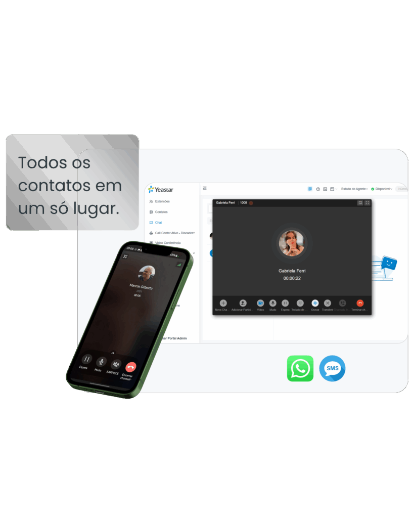 Responda clientes pelo Live Chat, WhatsApp e SMS em uma única interface, centralizando o atendimento e ganhando mais agilidade. Realize videoconferências com apenas um clique e ofereça uma experiência profissional em todos os canais.
